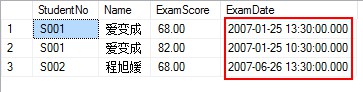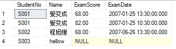 SELECT T1.StudentNo, T1.Name, T2.ExamScore, T2.ExamDate FROM Student AS T1OUTER APPLY( SELECT TOP 2 * FROM Score AS T WHERE T1.StudentNo = T.StudentNo ORDER BY T.ExamDate DESC) AS T2