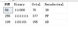 很簡(jiǎn)單的一張表,就一個(gè)字段num,我想把這個(gè)字段的int型數(shù)字分別轉(zhuǎn)化成二進(jìn)制八進(jìn)制和十六進(jìn)制的數(shù)值,有現(xiàn)成的進(jìn)制轉(zhuǎn)化的表值函數(shù)。