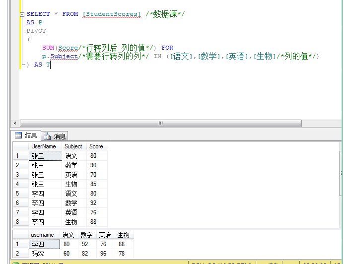 SQL Server使用PIVOT與unPIVOT實現(xiàn)行列轉(zhuǎn)換