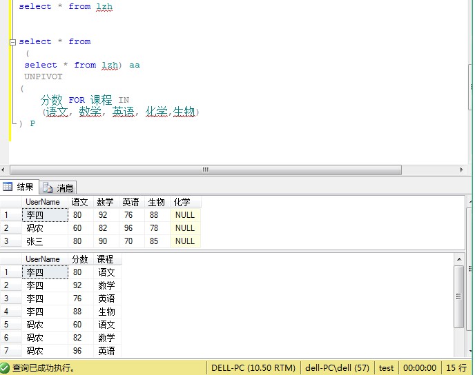 二、sql列轉(zhuǎn)行:unPIVOT: