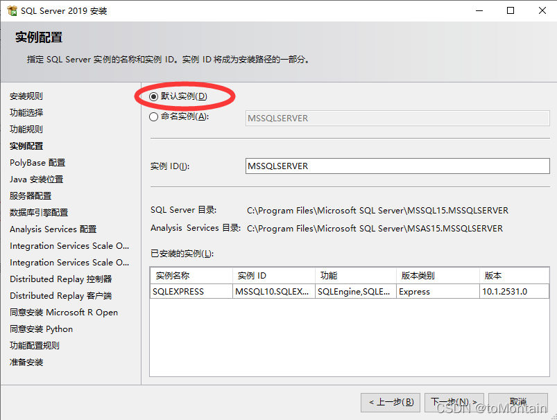 選擇默認實例即可(如要命名,不可重復):
