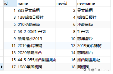 SELECT a.id,a.`name`,b.newid,b.newname FROM z_good a,z_good_new bWHERE INSTR(a.`name`,b.newname)>0 OR INSTR(b.newname,a.`name`)>0