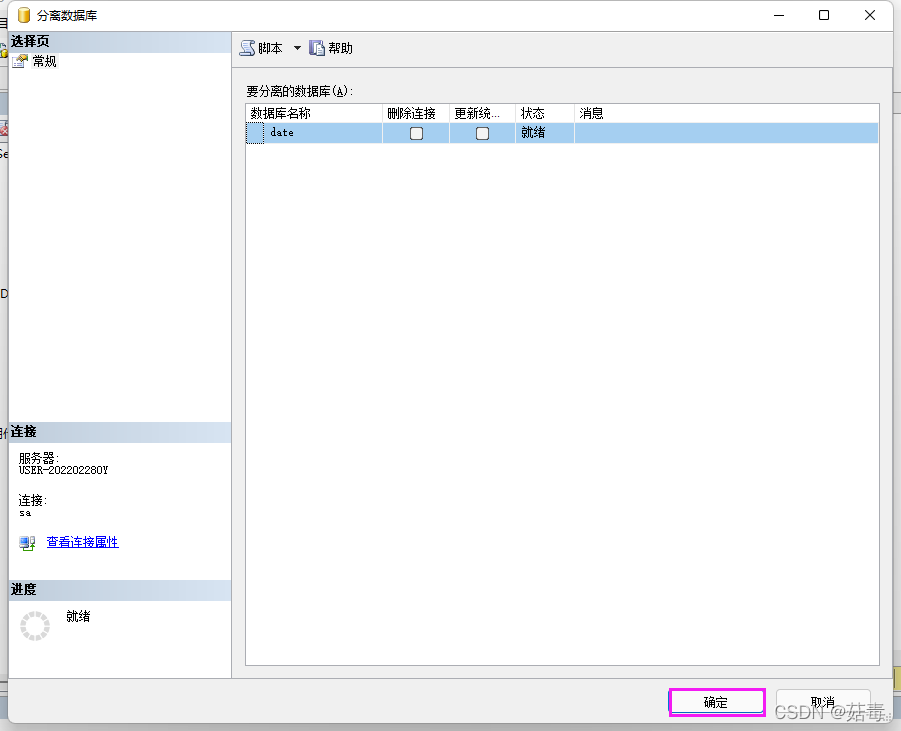 4.分離數據庫對話框,確定;