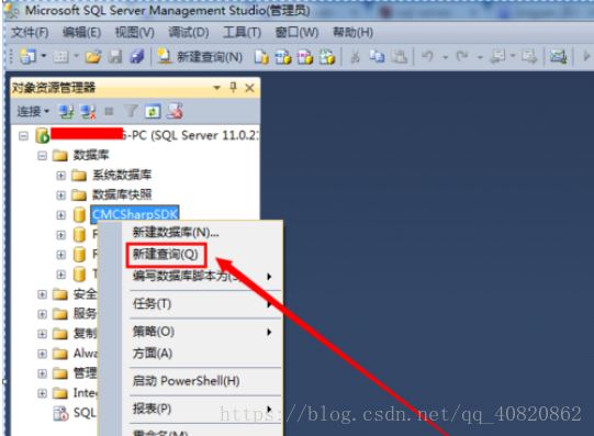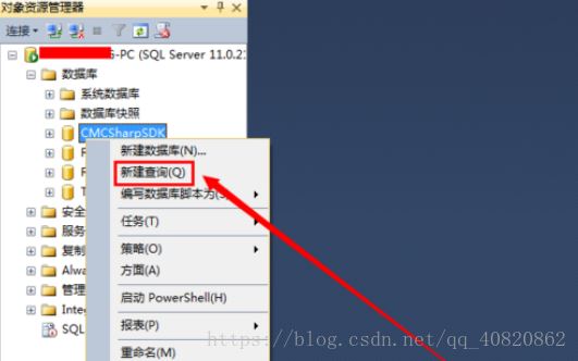 ****2.****打開數據庫,右鍵某一個數據庫,選擇“新建查詢(Q)”。