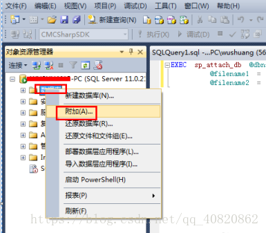 ****1.****在“數據庫”處右鍵選擇“附加”,打開附加界面。