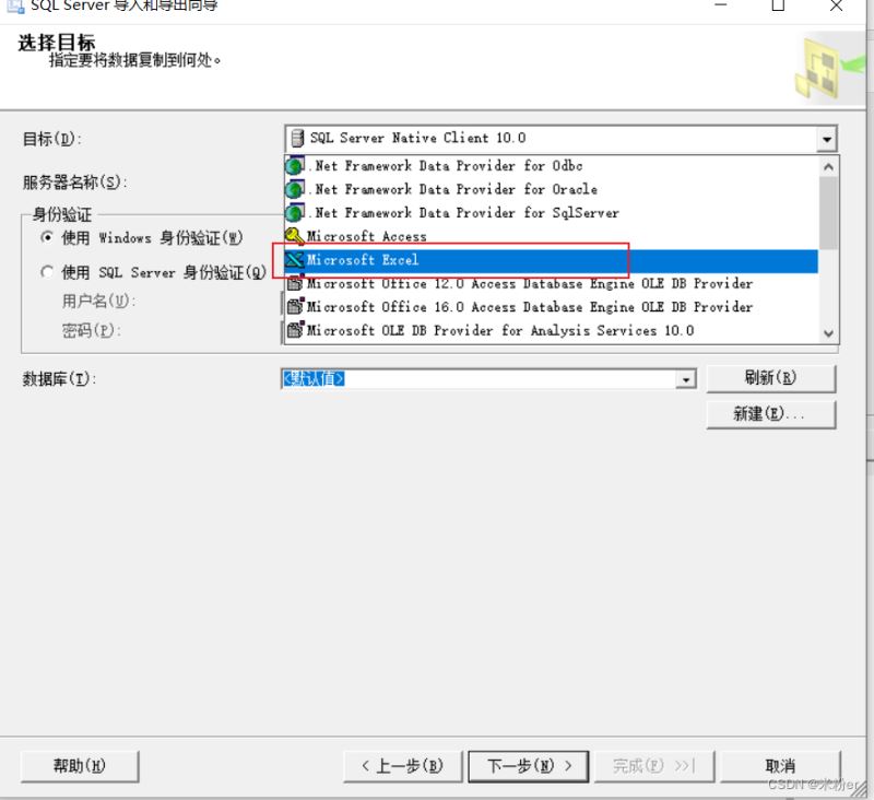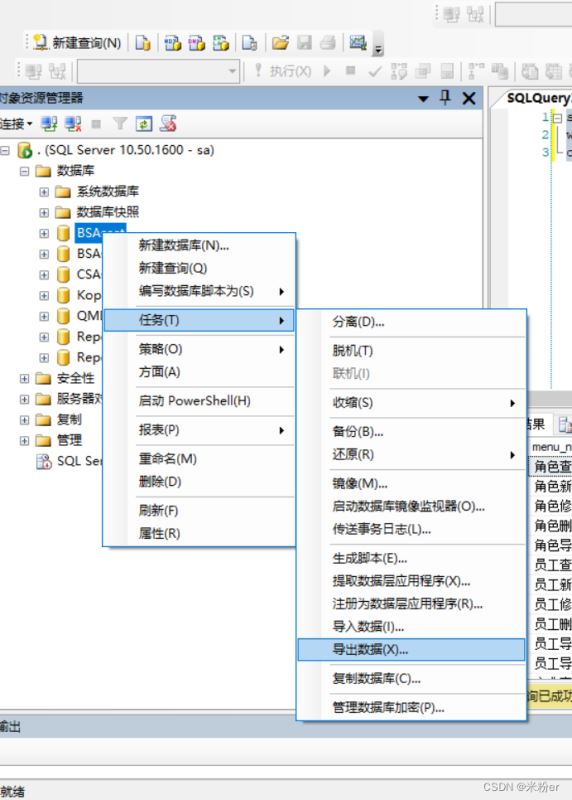 將查詢的兩列數(shù)據(jù)導出到excel中 1.選擇數(shù)據(jù)庫,右鍵任務→導出數(shù)據(jù),打開導入導出向?qū)?,單擊下一?/p>