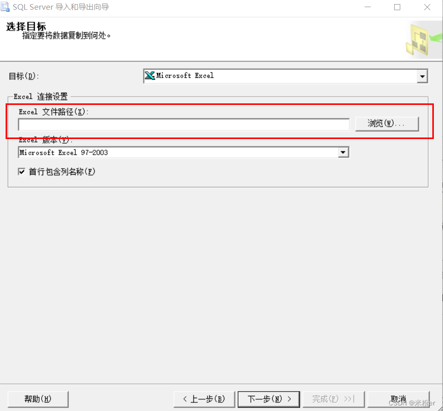 3.選擇目標為Mircosoft Excel,選擇Excel需要保存的路徑,單擊下一步