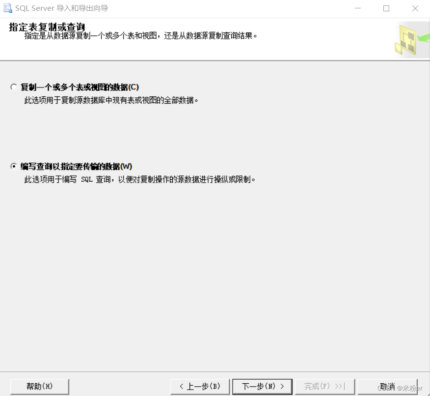 4.選擇編寫查詢以指定要傳輸?shù)臄?shù)據(jù),單擊下一步