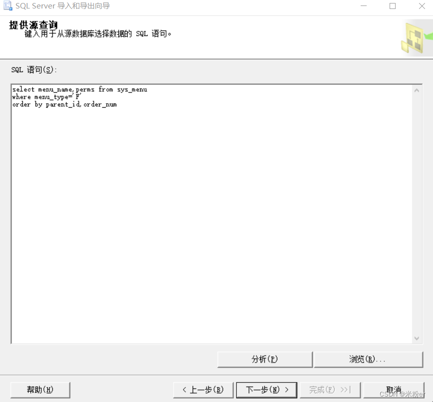 5.復制SQL語句到對話框中,單擊下一步