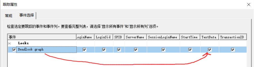 這里我們就用第一種方式,一定要勾選 TextData 項,因為這里面會有死鎖上下文信息的xml表示,截圖如下: