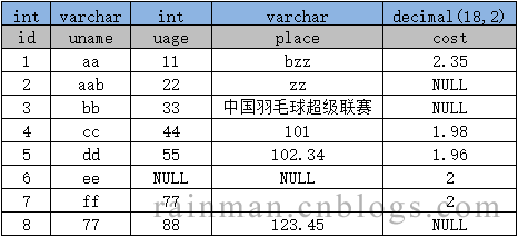 數字指的是int、decimal等類型。數字 + 數字,則進行數字相加,若某字段為NULL,則計算結果為NULL。