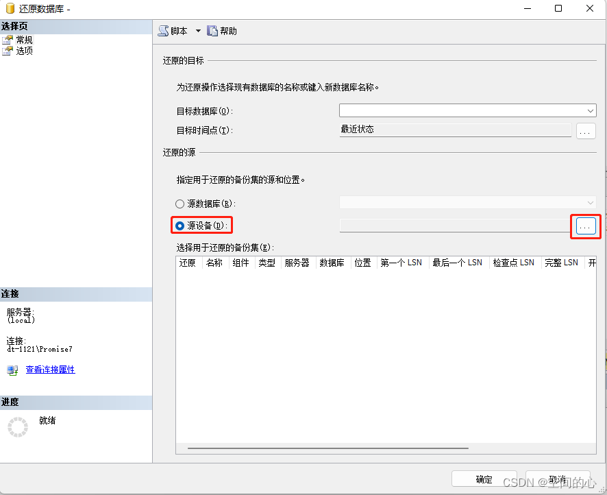 在還原的源中選擇源設(shè)備→點(diǎn)擊選擇框