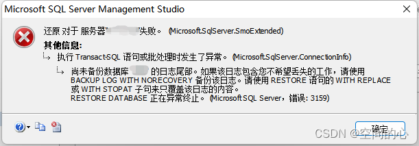 2.System.Data.SqlClient.SqlError: 尚未備份數(shù)據(jù)庫 "xxx" 的日志尾部