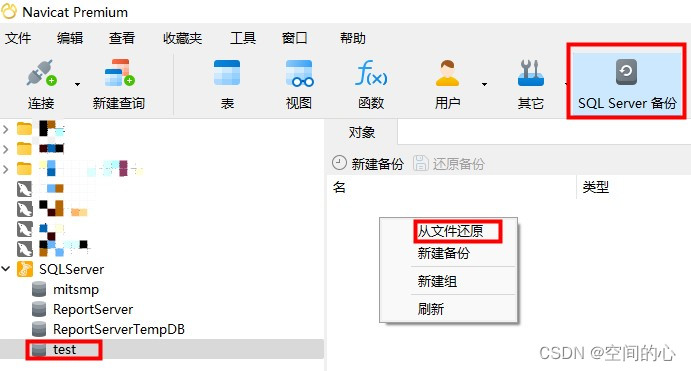選擇SqlServer任意數(shù)據(jù)庫→SQL Server備份→空白處鼠標(biāo)右鍵→選擇從文件還原
