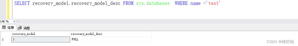 腳本檢查恢復(fù)模式:SELECT recovery_model,recovery_model_desc FROM sys.databases WHERE name ='test';