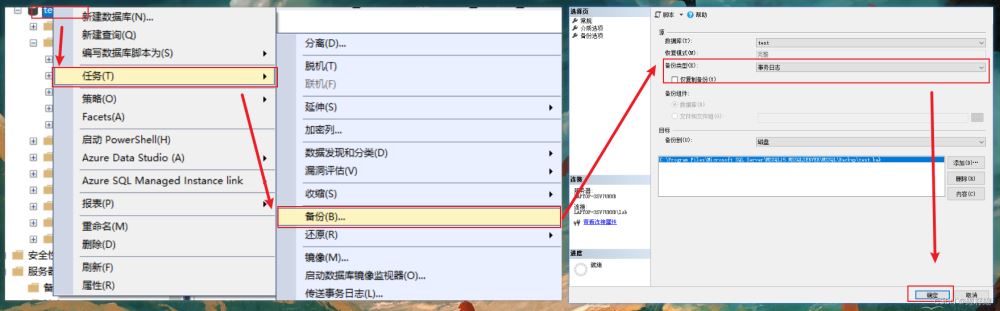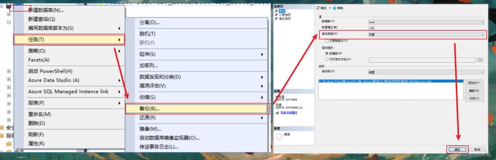 選中數(shù)據(jù)庫(kù)=》右鍵菜單,選擇【任務(wù)】=》選擇【備份】=》備份類型,選擇【完整】=》確定