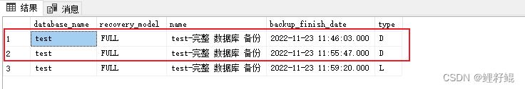 type為D表示數(shù)據(jù)備份,L表示事務(wù)日志備份: