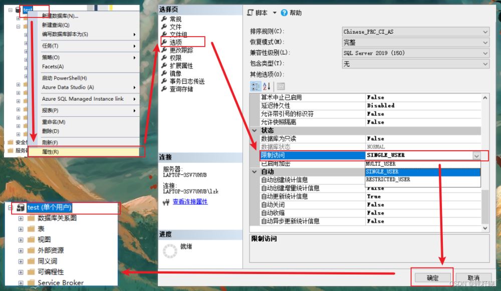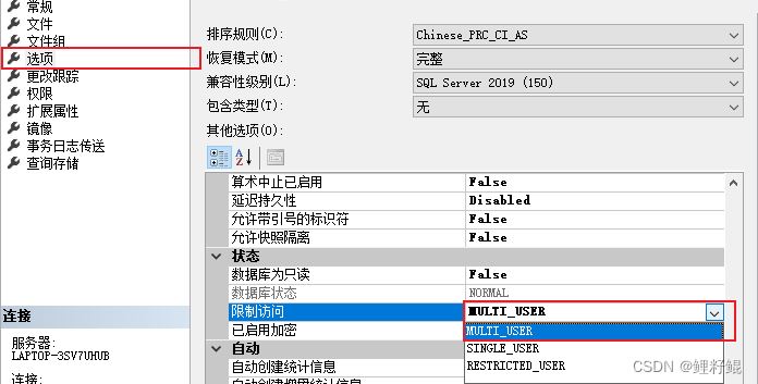 5、最后恢復(fù)數(shù)據(jù)庫(kù)的限制訪問(wèn)設(shè)置