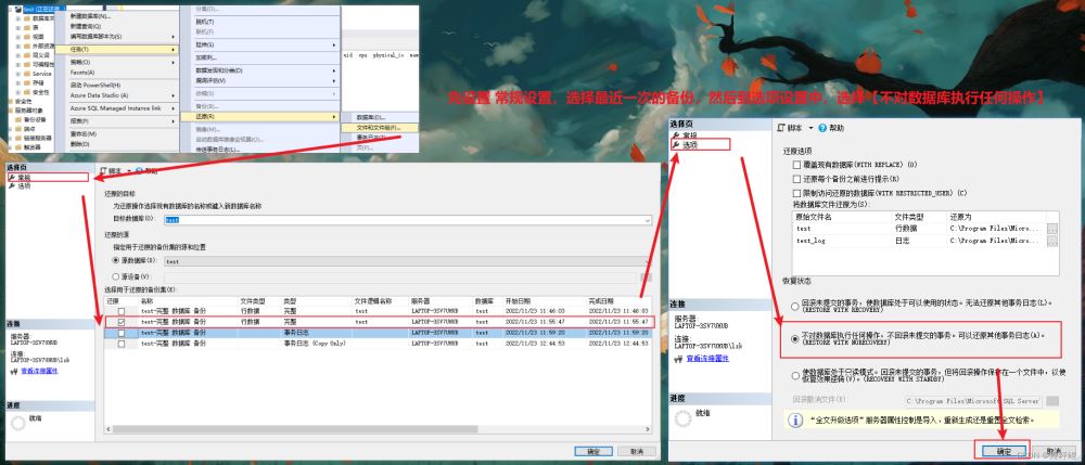 完成上述事務(wù)日志的備份后,我們就需要將數(shù)據(jù)進(jìn)行還原。