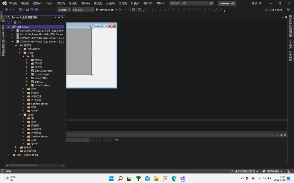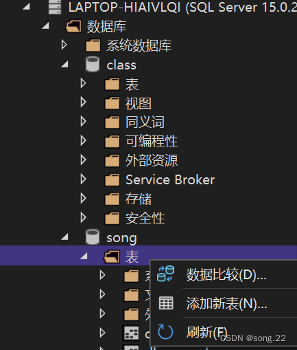 如圖,就可以看到vs已經連接到了自己的數據庫,class和song兩個數據庫 。可以看到class下面有五個表。