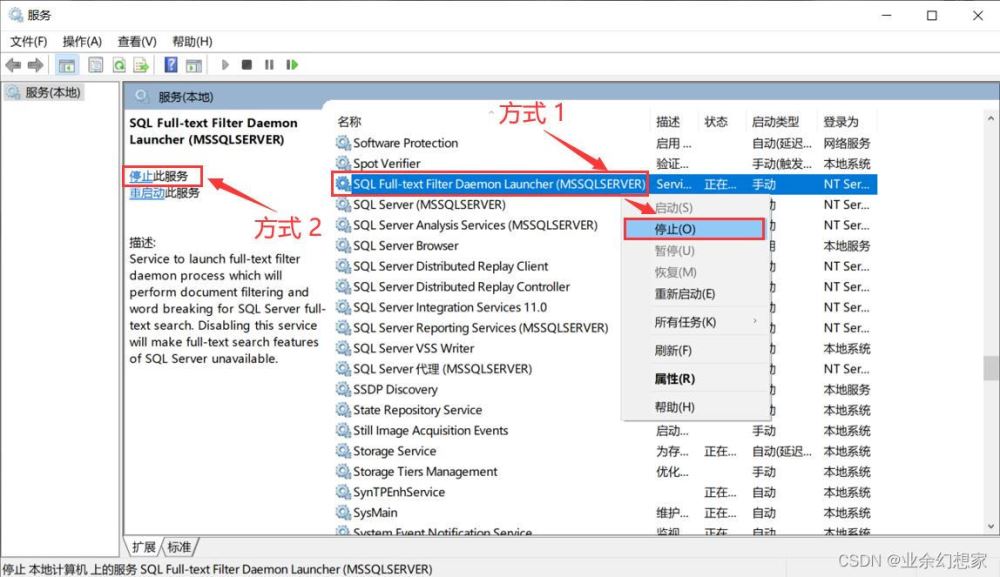 找到所有 SQL Server 的服務(wù)并全部停止 (不同的版本可能會有區(qū)別)