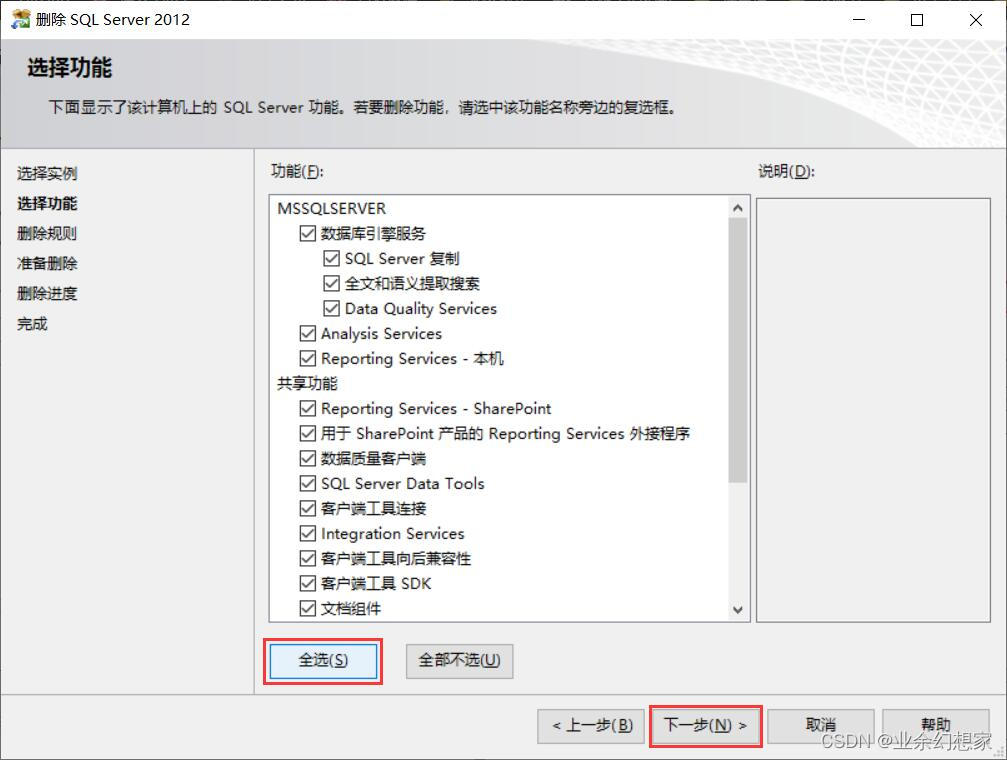 注:根據(jù)自己的電腦情況看,如果還有其他與 SQL Server 相關(guān)的項(xiàng)也要全部刪除