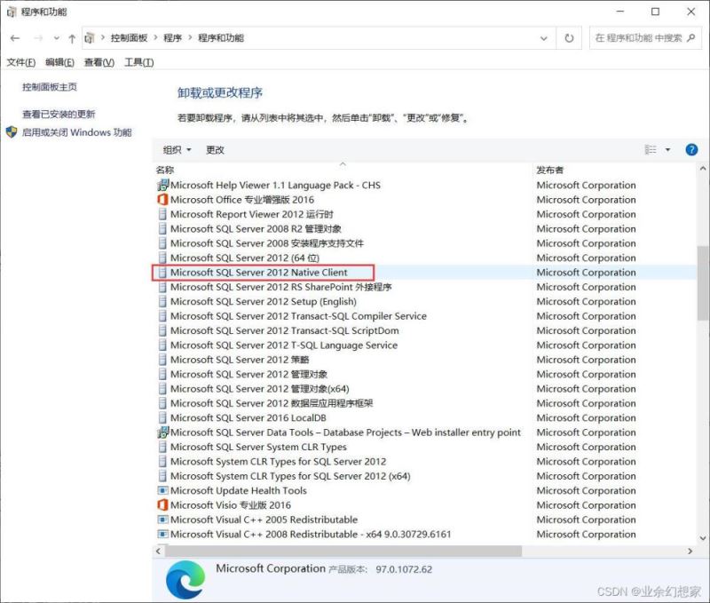 找到 Microsoft SQL Server 2012 Native Client 鼠標(biāo)【右鍵】-【卸載】,在彈出的對話框中選擇【是】(其他版本找對應(yīng)的 Native Client 程序,如:SQL Server 2019 就找 Microsoft SQL Server 2019 Native Client)