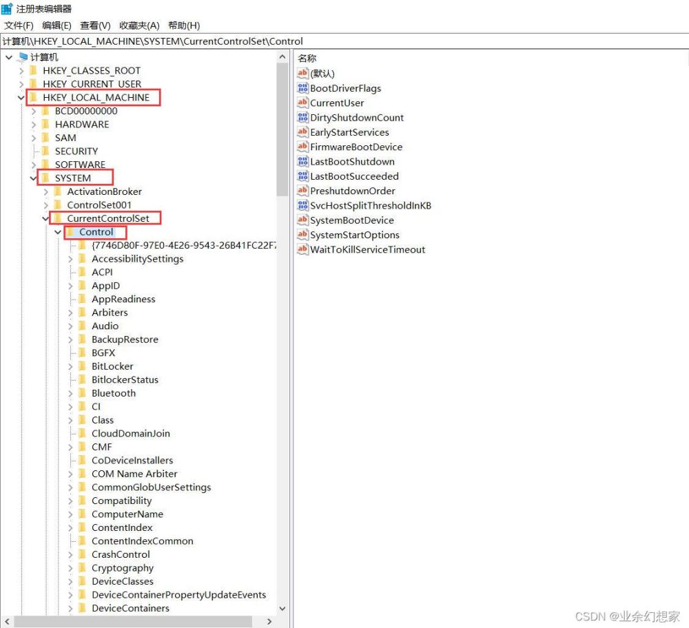 找到 HKEY_LOCAL_MACHINE \SYSTEM\CurrentControlSet\Control 并展開