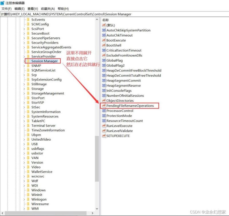 在剛剛展開的列表里面找到 Session Manager ,在右邊找到 PendingFileRenameOperations 鼠標(biāo)【右鍵】-【刪除】