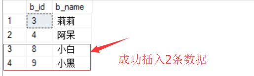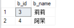 insert into b1(b_name) values("莉莉") insert into b1(b_name) values("阿呆")插入結果:
