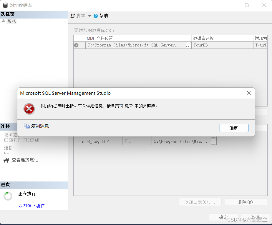 1.常見的無法附加數據庫時,出現的錯誤