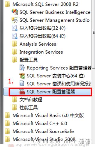 1、打開配置管理器,檢查微軟SQL服務器(MSSQLServer)的TCP/IP協議是否開啟。