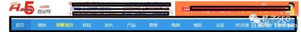 以上所述的導(dǎo)航方式在各種大型網(wǎng)站上基本都可以看見,當(dāng)然了,對(duì)于中小型網(wǎng)站楊子建議也可以根據(jù)這個(gè)位置規(guī)劃導(dǎo)航。下面以A5創(chuàng)業(yè)網(wǎng)為例來簡(jiǎn)單介紹下頂部導(dǎo)航的位置規(guī)劃。
