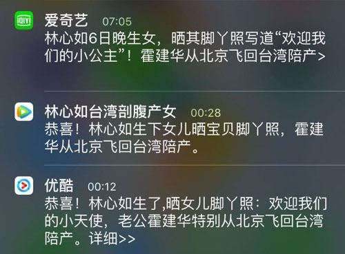 比如關于“林心如生女兒”這條八卦信息的推送,三款視頻軟件從文案的角度來看,騰訊視頻最優: