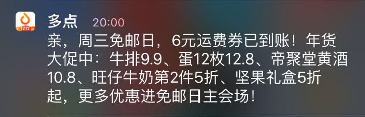 對于優惠信息的推送,內容比文案更重要,說的不負責任一些,如果是用戶真正感興趣的優惠活動,哪怕文案中有錯別字,效果也比不相干的優惠信息要好,具體怎樣利用算法檢索出用戶偏好不在本文的討論范圍內,但上文這種的推送在春節前優惠信息爆炸階段很容易被埋沒。