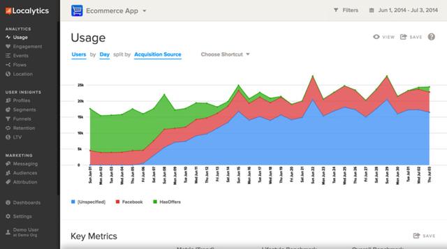 Google Analytics(分析),Kissmetrics和Mixpanel主要關注網絡分析,并具有集成應用分析能力,Localytics則是關于移動應用分析。Localytics是了解用戶如何與應用互動的理想選擇。它可以告訴你,每個用戶打開應用程序的頻率,花費了多少時間使用,以及應用程序中的哪些活動或內容得到了用戶的最多關注。