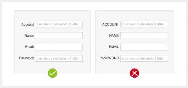 2、英文標簽避免全部大寫一些英文界面的表單設(shè)計,我們要避免標簽的全大寫。全部大寫的標簽容易造成閱讀和瀏覽上的困難。