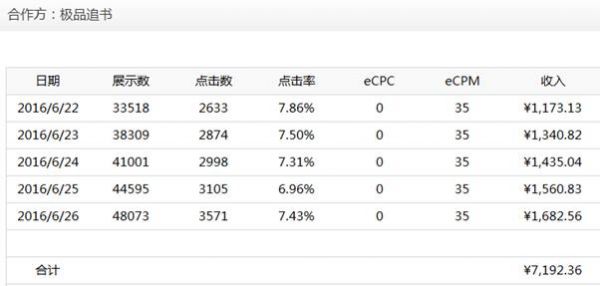 下圖為我的定制產(chǎn)品廣告后臺(tái)收入明細(xì)