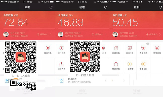 錢咖總結(jié):大家玩錢咖一定要做付費任務(wù),另外想要收益多多除了要自己搶任務(wù)做,更要多收徒弟邀請別人,大家可以在微博、微信、QQ以及百度貼吧上分享自己的二維碼邀請別人。