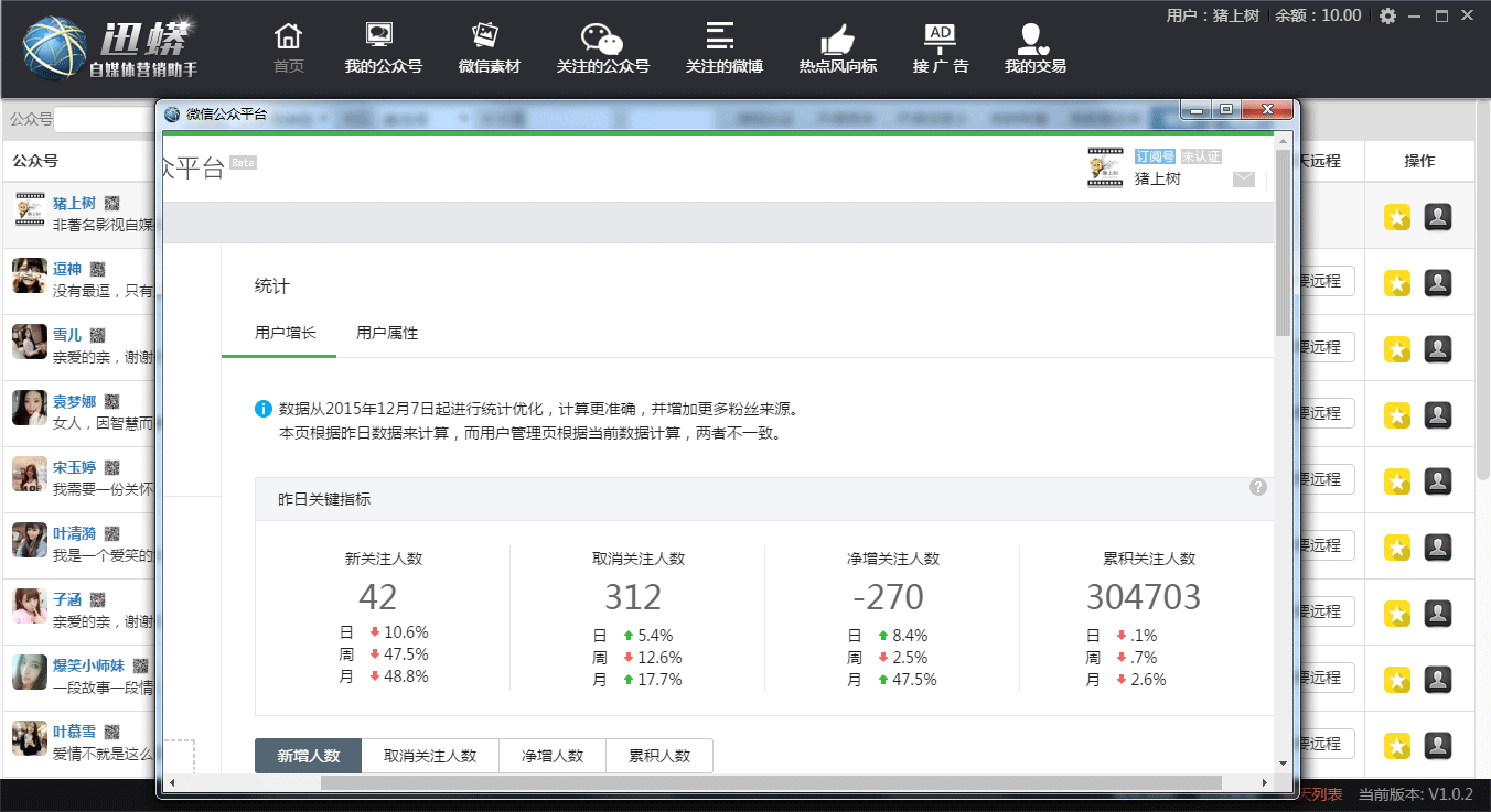從粉絲到變現(xiàn)的轉(zhuǎn)化,就是找準(zhǔn)一種合適自己的變現(xiàn)方式。賣什么產(chǎn)品,面向怎樣的受眾,售后是否能跟進(jìn),是否能產(chǎn)生粘性,變現(xiàn)方式的生命力如何,都是需要根據(jù)實(shí)際情況慎重考慮的。賣產(chǎn)品的,運(yùn)營者培養(yǎng)粉絲的微信消費(fèi)習(xí)慣,這些事有難度,并且任重道遠(yuǎn)。賣廣告的,要專注如何讓生硬的廣告變得讓粉絲樂于接受,不會產(chǎn)生厭煩感。這里分享一個廣告交易軟件——迅蟒自媒體助手,可以讓沒有接觸過廣告業(yè)務(wù)的新手快速上手,還有擔(dān)保交易模式,全面保障了交易雙方的權(quán)益,交易資金不會出現(xiàn)問題。更能讓使用者進(jìn)行日常文案編輯,更方便更快捷。