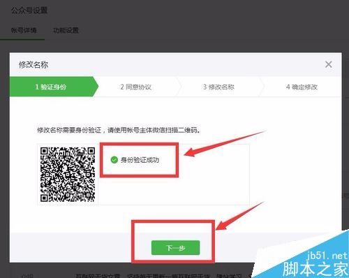 當(dāng)我們點(diǎn)擊修改名稱的時(shí)候,這時(shí)候就會(huì)跳出了一個(gè)頁面來,首先要我們用微信(管理員的私人微信)掃描驗(yàn)證!