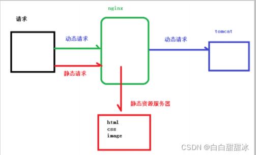 nginx 的動靜分離,指的是由 nginx 將客戶端請求進行分類轉發(fā),靜態(tài)資源請求(如html、css、圖片等)由靜態(tài)資源服務器處理,動態(tài)資源請求(如 jsp頁面、servlet程序等)由 tomcat 服務器處理,tomcat 本身是用來處理動態(tài)資源的,同時 tomcat 也能處理靜態(tài)資源,但是 tomcat 本身處理靜態(tài)資源的效率并不高,而且還會帶來額外的資源開銷。利用 nginx 實現(xiàn)動靜分離的架構,能夠讓 tomcat 專注于處理動態(tài)資源,靜態(tài)資源統(tǒng)一由靜態(tài)資源服務器處理,從而提升整個服務系統(tǒng)的性能 。