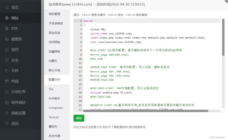 第二個是網站本身的配置文件,在/www/server/panel/vhost/nginx/ 路徑的文件夾下。