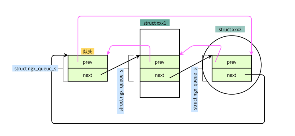 typedef struct ngx_queue_s ngx_queue_t;struct ngx_queue_s { ngx_queue_t *prev; ngx_queue_t *next;};