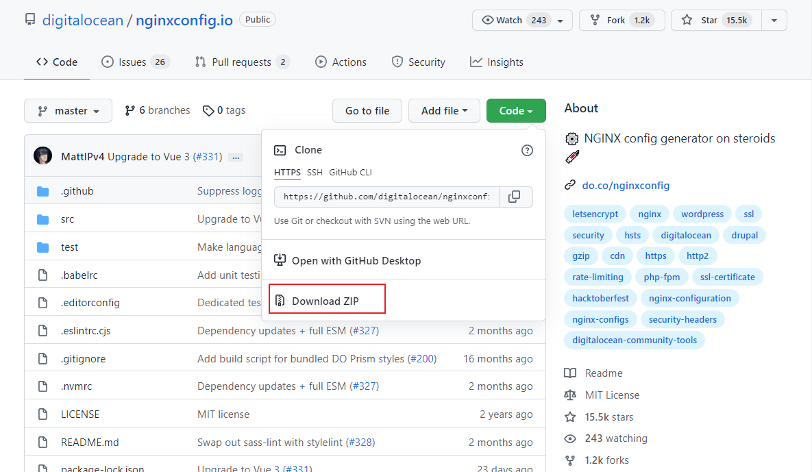 下載地址:https://github.com/digitalocean/nginxconfig.io