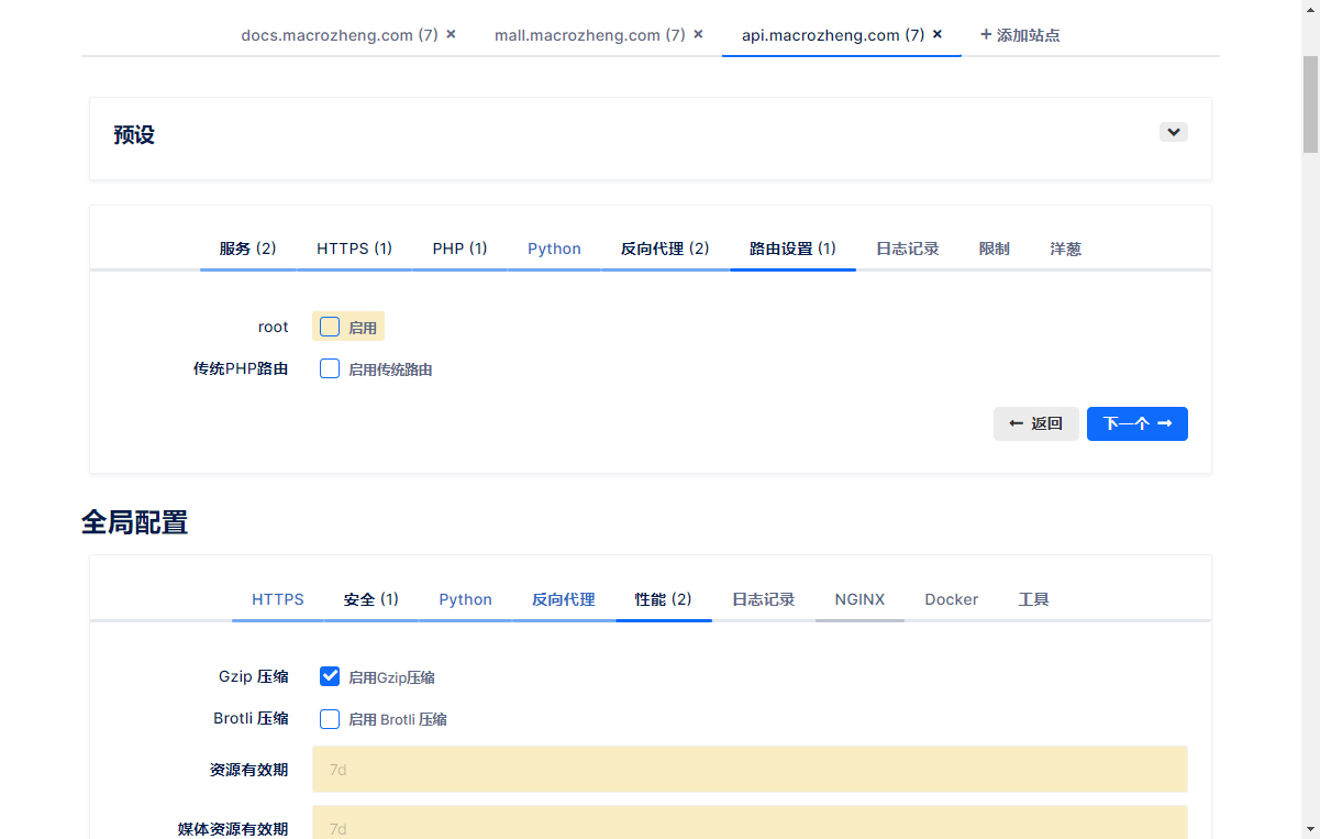 再修改性能配置,開啟Gzip壓縮,刪除資源有效期限制。