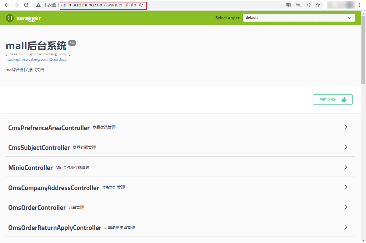 最后配置下mall的Swagger API文檔網站的訪問,域名為:api.macrozheng.com。