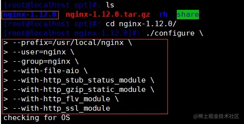 cd /opttar zxvf nginx-1.12.0.tar.gz -C /opt/cd nginx-1.12.0/./configure \--prefix=/usr/local/nginx \--user=nginx \--group=nginx \--with-file-aio \ #啟用文件修改支持--with-http_stub_status_module \ #啟用狀態(tài)統(tǒng)計--with-http_gzip_static_module \ #啟用 gzip靜態(tài)壓縮--with-http_flv_module \ #啟用 flv模塊,提供對 flv 視頻的偽流支持--with-http_ssl_module #啟用 SSL模塊,提供SSL加密功能----------------------------------------------------------------------------------------------------------./configure --prefix=/usr/local/nginx --user=nginx --group=nginx --with-file-aio --with-http_stub_status_module --with-http_gzip_static_module --with-http_flv_module