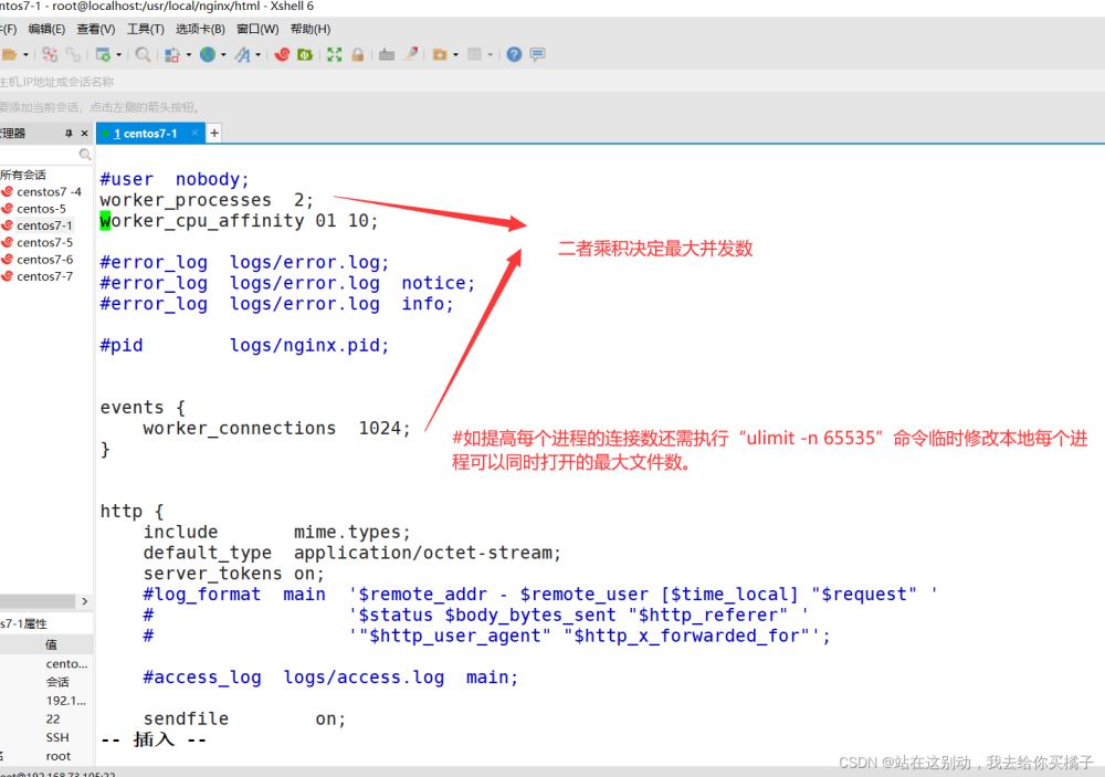 vim /usr/local/nginx/conf/nginx.conf worker_processes 2;#修改為與CPU核數(shù)相同 worker_cpu_affinity 01 10; #設(shè)置每個(gè)進(jìn)程由不同cpu處理,進(jìn)程數(shù)配為4時(shí)0001 0010 0100 1000 ?