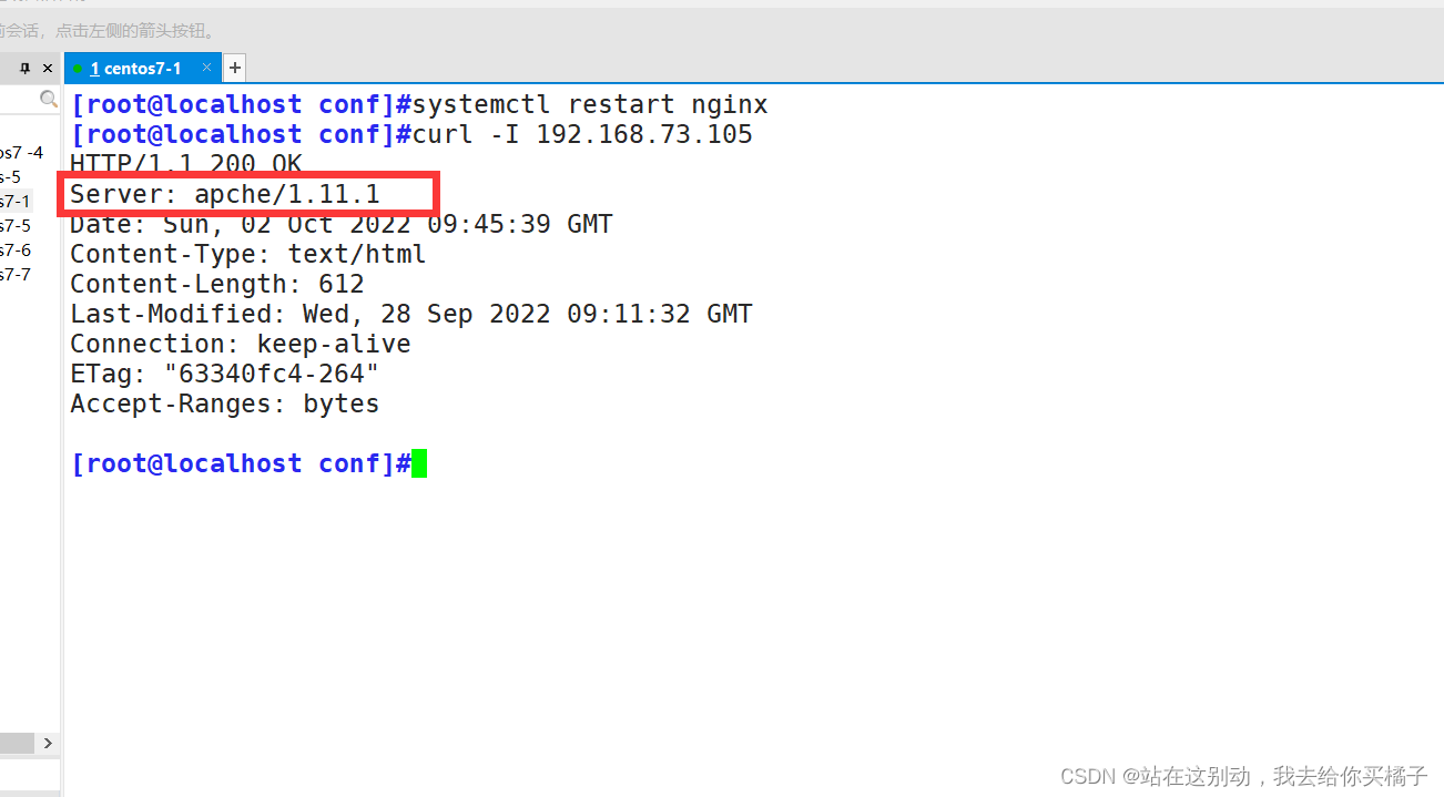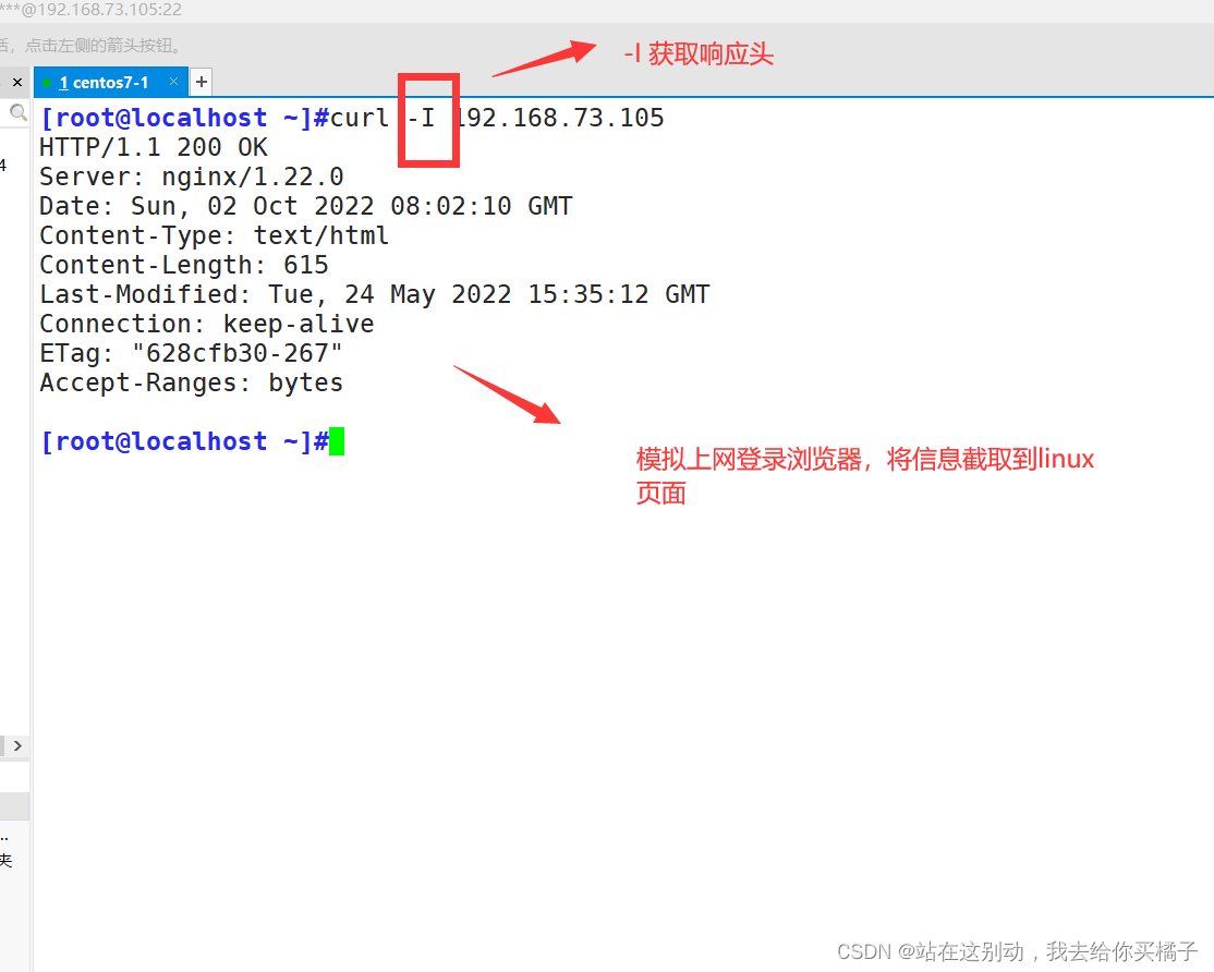 [root@localhost ~]#curl -I 192.168.73.105